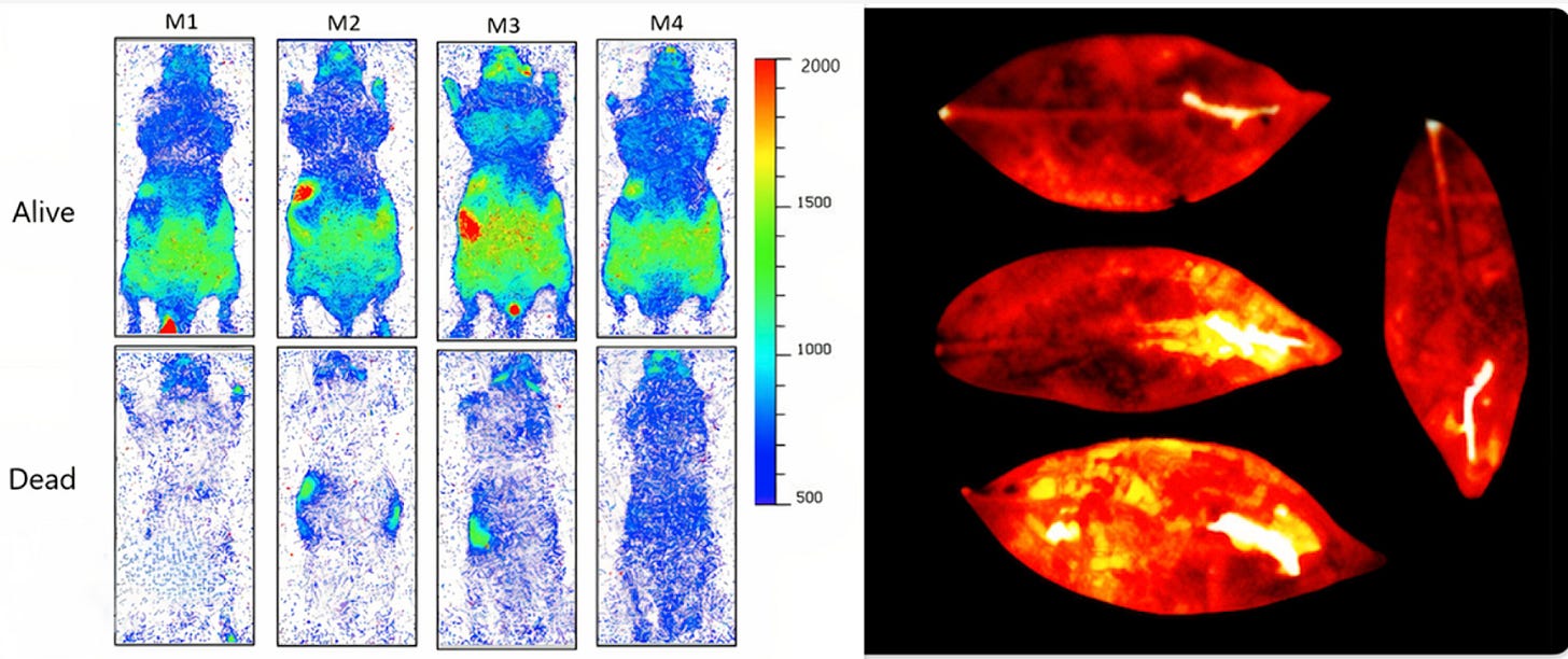 Todos los ratones dejaron de emitir esta luz invisible tras su muerte, como os mostramos en la imagen más abajo.